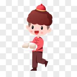 手绘卡通男孩拿着腊八豆腐免抠元素