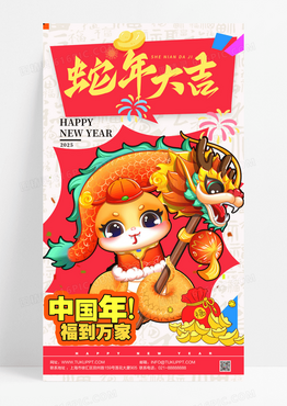 卡通拼贴风格蛇年大吉中国年海报设计