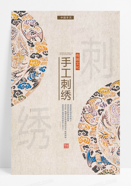 简洁中国风手工刺绣海报设计模板