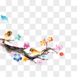 插画水墨梅花边框免抠元素