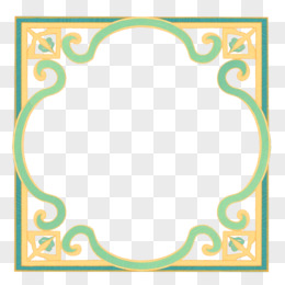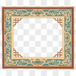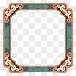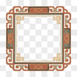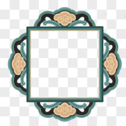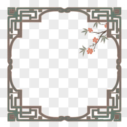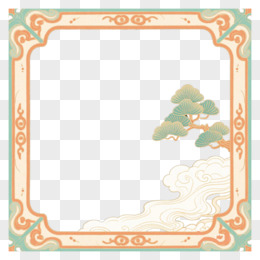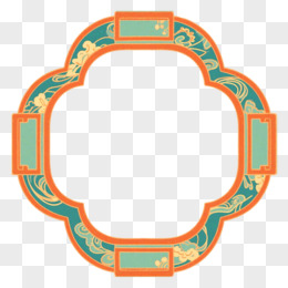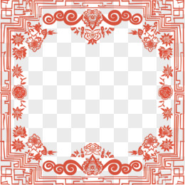 中式剪纸风粉金印花花瓣形边框免抠元素