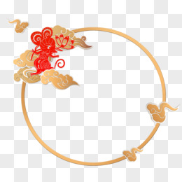 国朝矢量红金圆形祥云装饰边框免抠元素