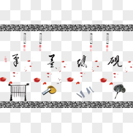手绘笔墨纸砚四宝笔墨纸砚素材