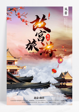 中国风旅游文化故宫绿叶创意海报