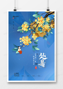 简洁中国风手绘桂花二十四节气处暑海报设计