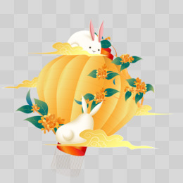 玉兔灯笼桂花创意合成插画素材