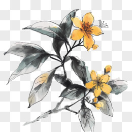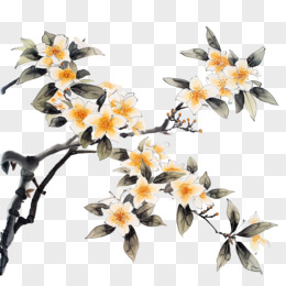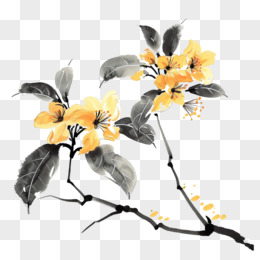 古风水墨桂花免抠元素
