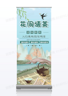 简约中国风国潮插画春季春茶上新易拉宝