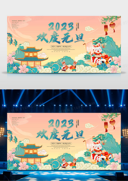 中国风国潮欢度元旦快乐祥云2023年国潮元旦