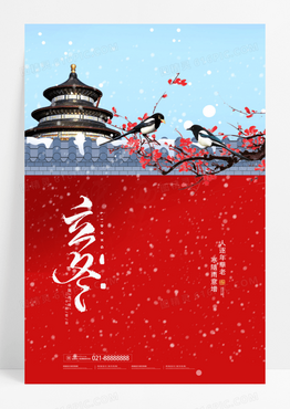 红色中国风水墨冬季植物红梅梅花花朵png免抠