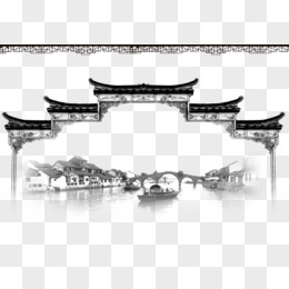 一组手绘插画中国风古代建筑瓦片屋檐套图合集元素五