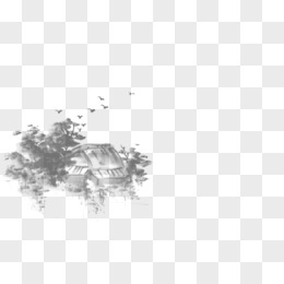 手绘中国风水墨房子元素