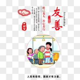 一组红色卡通国学勤学精礼孝善艺术字设计