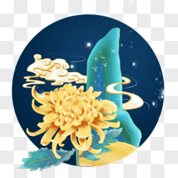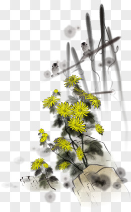 一组手绘中国风梅兰竹菊花卉组合元素之菊花