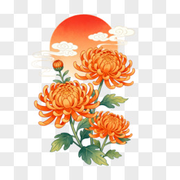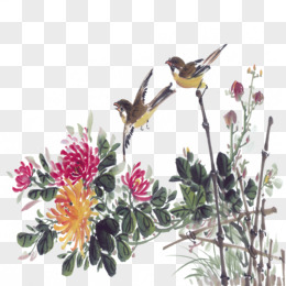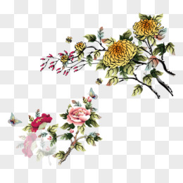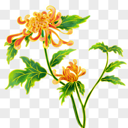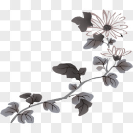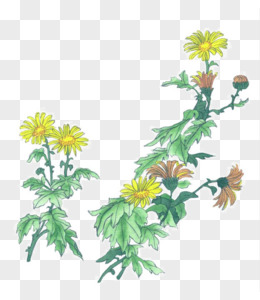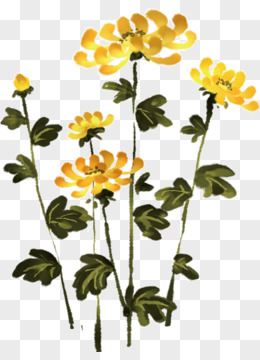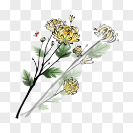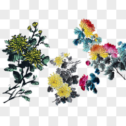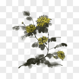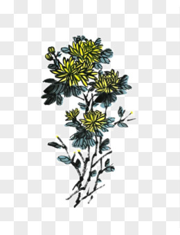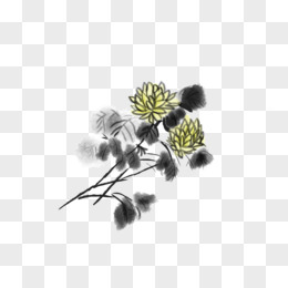 一组手绘水墨梅兰竹菊花卉合集套图元素之菊花