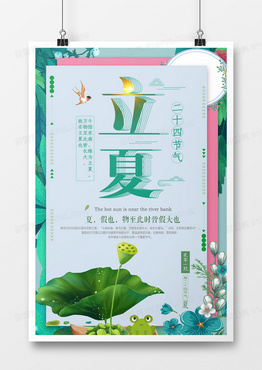 简约小清新扁平中国风创意绿色可爱中国节气立夏海报