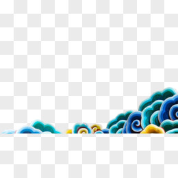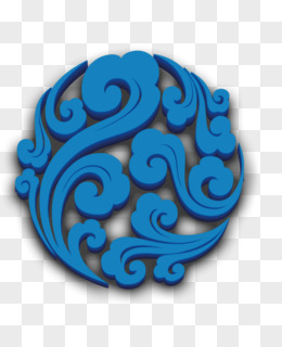 中国风国潮蓝色山水仙鹤祥云免扣元素