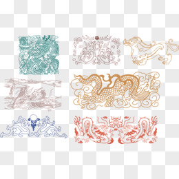 龙纹等中国风传统古典纹饰矢量素材下载,矢量素材,