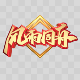 风雨同舟年会主题企业文化正能量黄金质感创意金色中国风红黄立体艺术字