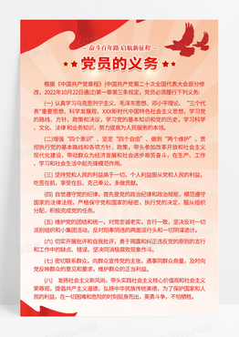 黄色红色中国风创意党员义务文案海报党政党课党建海报