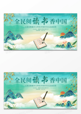 绿色中国风鎏金全民阅读书香中国世界读书日展板