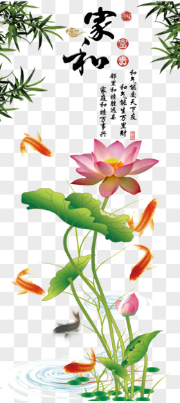 国潮旗袍女荷花鱼手绘卡通时尚素材