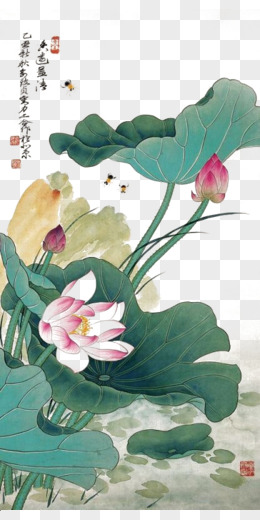 手绘中国风图片中国风卡通 中国风墨迹荷花