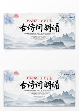 简约中国风水墨山水背景古人经典圣贤智慧古诗词朗诵展板