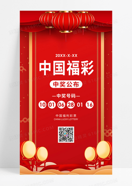 红色中国风喜庆中国福利彩票ui手机海报