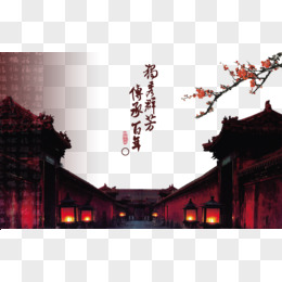 手绘金边国潮建筑景德镇祈福殿免抠元素