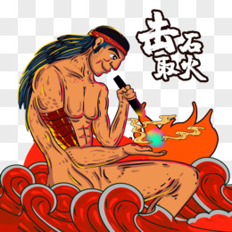 卡通手绘古代神话故事之盘古开天辟地插画元素