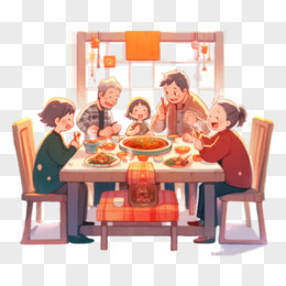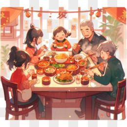 手绘卡通一家人团圆吃年夜饭免抠元素