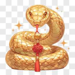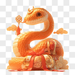 3D立体新年黄色蛇和中国结祥云免抠元素