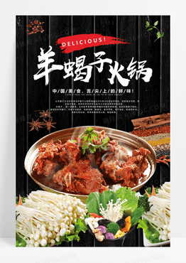 黑色大气羊蝎子火锅中国美食舌尖上的美味海报