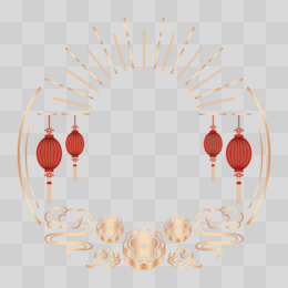 唯美的新年中国风格红人红金牡丹花边框免扣元素