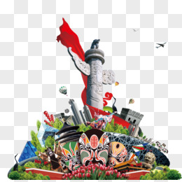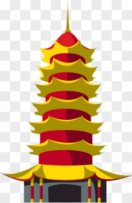 手绘金边国潮建筑景德镇祈福殿免抠元素