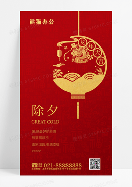 红色简约除夕中国结红包除夕手机海报除夕祝福