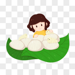 卡通小女孩们坐在麦穗叶子上免抠元素