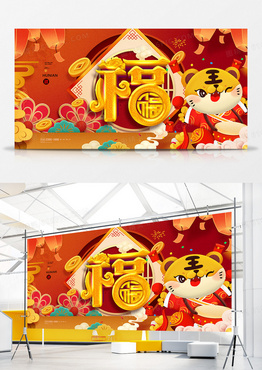 手绘卡通国潮风春节老虎打鼓免抠元素
