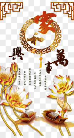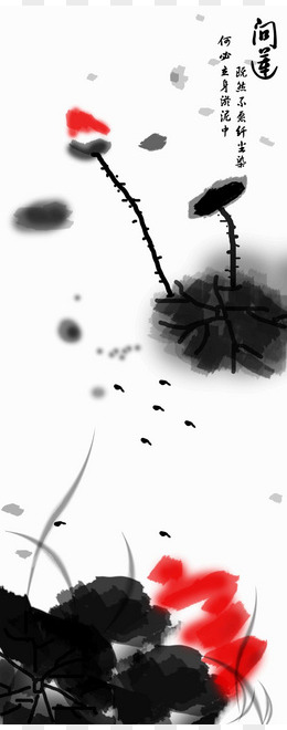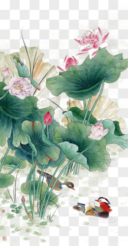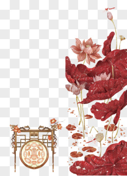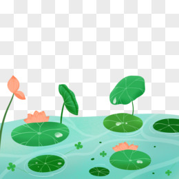 手绘池塘锦鲤和荷花夏季国潮微景观素材