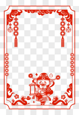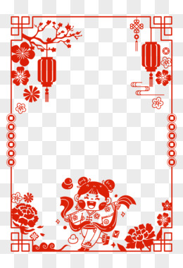 手绘红色龙年国潮剪纸边框素材