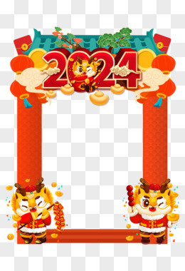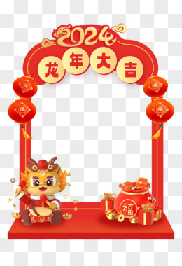 一组新年拍照边框2024龙年边框合成元素
