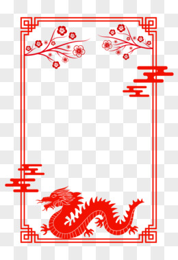 红色龙剪纸边框素材