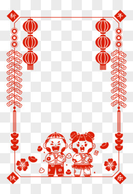 手绘卡通新年剪纸边框免抠元素