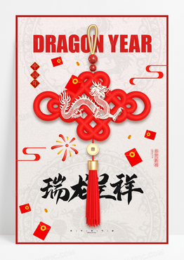 大气金色龙年新年剪纸龙中国结挂饰元素