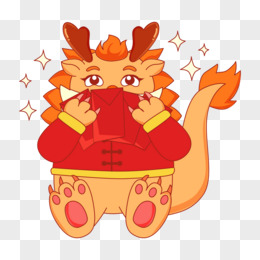 手绘卡通红色龙年底纹免抠元素