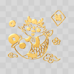 金色立体设计卡通龙骑锦鲤免抠装饰元素