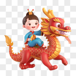 手绘卡通龙一家人买年货免抠元素一
