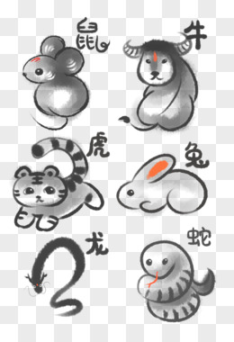 一组可爱水墨风十二生肖元素