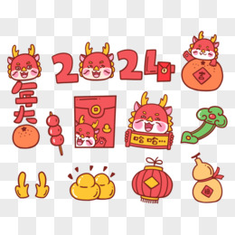 一组龙年卡通元素合集贴纸素材